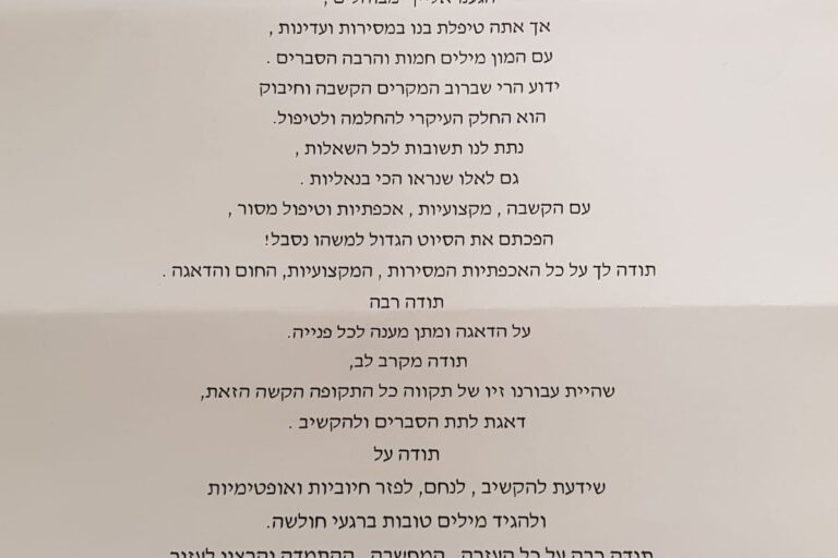 הטופס מיועד למי שמעונין לרשום המלצה או מכתב תודה ומאשר לפרסמו. אם לא צוין השם – נפרסם ללא שם. נודה לכם אם תוכלו להשאיר לכל הפחות שם פרטי. תודה